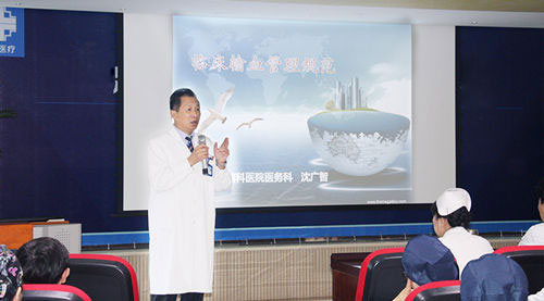 医务科科长对全院医务人员进行“临床输血管理规范”知识培训