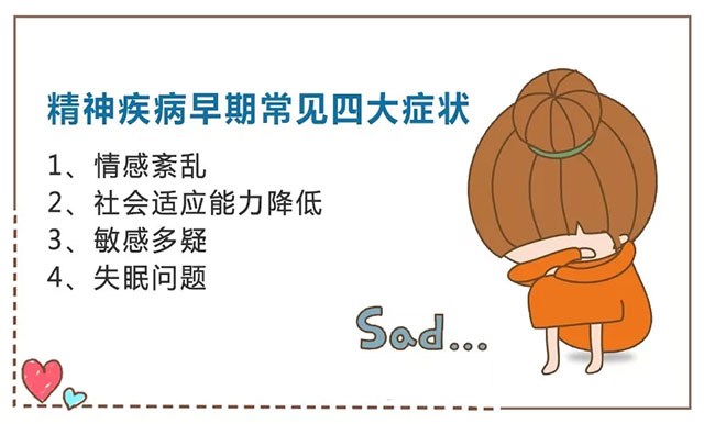 精神疾病严重损害着人们的身体和心理健康,它和一般躯体疾病一样,发现的越早,治疗的越早,预后就越好,因此我们必须对其早期常见的一些症状有所了解,精神疾病常见4大症状如下: