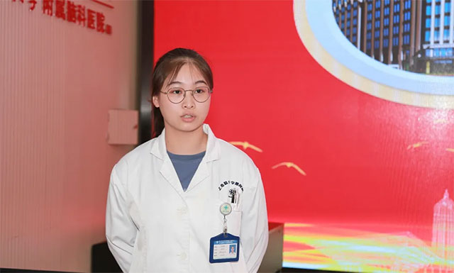 发言康复治疗科治疗师杨煜梓和5B神经内科护士武玉燕作为学姐代表发言,向学弟学妹们分享在医院工作的体验。杨煜梓是康复科的一名语言治疗师,通过质朴的言语和真挚的情感娓娓道述了在医院工作3年多来的心得体会和经验感悟。她说,康复医学是一门实践性很强的学科,脑科医院病人多,医生临床实践的机会多,康复医学专业可在这里得到更大的发挥。此外,如何运用自己的专业知识让患者积极配合治疗,学会和病人沟通也很重要。武玉燕是上海健康医学院2016届护理专业毕业生,一毕业便选择蓝十字入职。工作至今,她早已从一名青涩的护理生,成长为科室护理骨干及总带教,不仅是护士长科室管理的得力助手,还每年带教10余位实习生。她表示,自己成长迅速,感谢医院的包容性强,给予自己施展才能的机会与平台,她坦言蓝十字真是不错的选择。