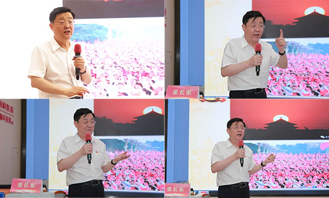 张长东教授解读了习总书记“七一”重要讲话精神,重要讲话贯穿辩证唯物主义和历史唯物主义的世界观方法论,内涵丰富、博大精深、思想深邃,立意高远、视野宏阔、掷地有声,有许多新的理念、思想、立场、观点,这些重要思想理念,进一步丰富了习近平新时代中国特色社会主义思想,展现了马克思主义政治家的格局和气度,体现了强烈的历史担当和炽热的为民情怀。