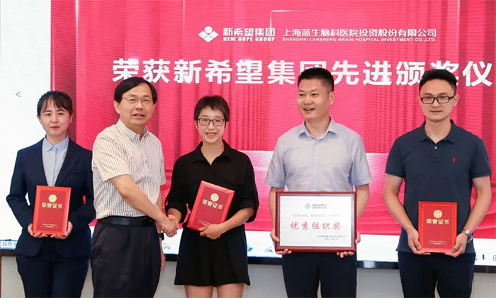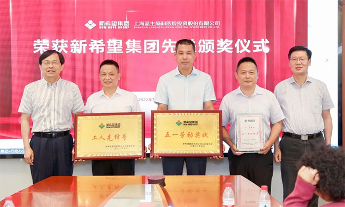 大会对受到新希望集团和蓝生脑科公司表彰的先进集体和优秀个人举行颁奖仪式。刘轶永总经理宣读新希望集团党委、工会、团委表彰通报和公司优秀护士表彰通报。对在临床医技、疫情防控、行政后勤等各项工作中,充分发扬党组织战斗堡垒作用和党、团员先锋模范作用的先进典型进行表彰。蓝生脑科公司卓立强董事长、陈树林书记、叶文琴副总裁为受表彰的先进集体和优秀个人颁奖。