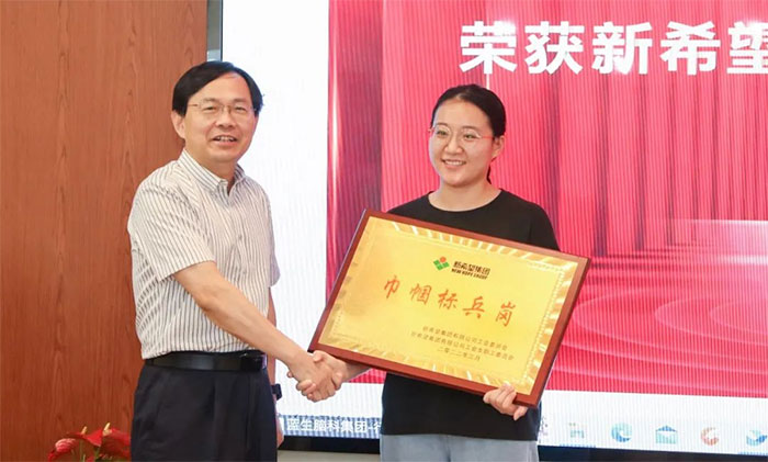 ▲ 卓立强董事长颁发“巾帼标兵岗”牌匾