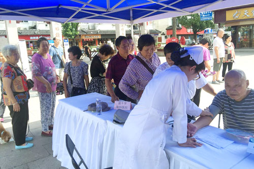 专家们认真、耐心对待来咨询的每一位居民,顶着骄阳坚持为前来咨询的居民耐心解答。当天咨询的居民以老年人居多,不少人都有“三高”困扰。由于“三高”老年人为脑血管病的高危群体,且临近盛夏伏天、脑血管病的高发季节,张德荣等专家医生不仅耐心指导他们要科学安全地用药、注意查看药品的有效期,同时要注意健康饮食,低脂低盐低糖饮食,多吃蔬菜、水果,还强调,“如果突然发生眩晕、剧烈头痛、步态异常、哈欠不断、血压异常、呛咳、吞咽困难或者半身麻木、疲倦、嗜睡、耳鸣等,这些都是脑血管病的先兆表现,一定要及时引起重视、及早就医。”
