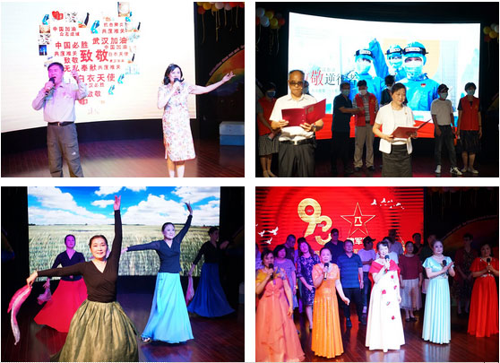 演出节目有诗朗诵,歌舞,从二重唱,到三句半,从独唱到相声、小品,再有舞蹈与合唱,还有古筝、琵琶演奏等,节目内容精彩纷呈。原来,演出者都是退役军人及家属组成的业余爱好文艺表演者,这些节目都是自编、自导,自演的,都是发自内心表达自己情感的节目,每个节目展演后都博得在场观众的热烈掌声。