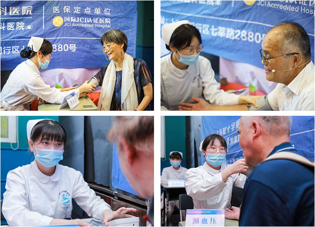 上海蓝十字脑科医院由神经内科副主任医师李振并、殷昌凤两位医生,王琴、艾杜鹃、刘静三位护士共5位医护人员组成的医疗团队,提前1个半小时来到了文艺演出现场,为演出者及观众们提供健康问询服务。