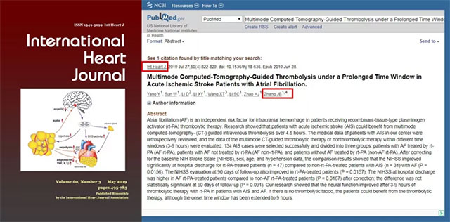 近期,美国《科学引文索引》( Science Citation Index, 简称SCI) 收录了上海蓝十字脑科医院神经内科主任张静波在《International Heart Journal》杂志影响因子2.226上发表的一篇题为《多模式CT指导下扩大时间窗伴有房颤急性缺血性卒中的溶栓治疗》的学术论文。该论文主要内容是关于临床实践中心房颤动(房颤)伴脑梗死的患者在多模CT指导下扩大时间窗治疗的研究成果。