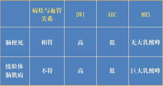 线粒体脑肌病也易误诊为脑梗死,主要是母系遗传,发病多集中于10-40岁之间。首发症状为运动不耐受、卒中样发作(偏轻瘫、失语、皮层盲或聋)并有肢体无力、抽搐或阵发性头痛、智能低下、乳酸血症及发育异常、听力或视力下降等症状。可从三个方面入手进行诊断:1.肌肉病理:典型改变为RRF或RBF、血管琥珀酸脱氢酶反应增强及细胞色素C氧化酶缺失。2.基因检测:亮氨酸tRNA的A3243G点突变所致 3.血和脑脊液:乳酸升高(间接反映线粒体呼吸链氧化酶功能异常)。