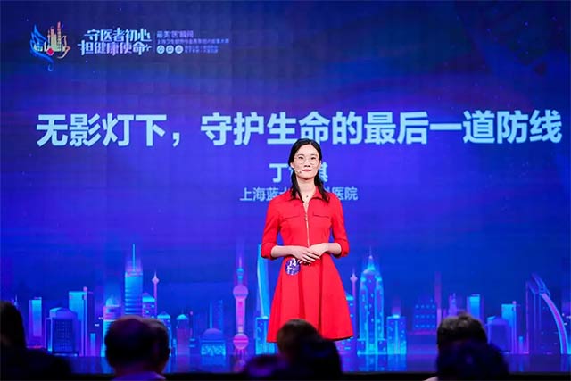 ▲ 丁世琪讲述《无影灯下,守护生命的最后一道防线》摄影作品背后的故事