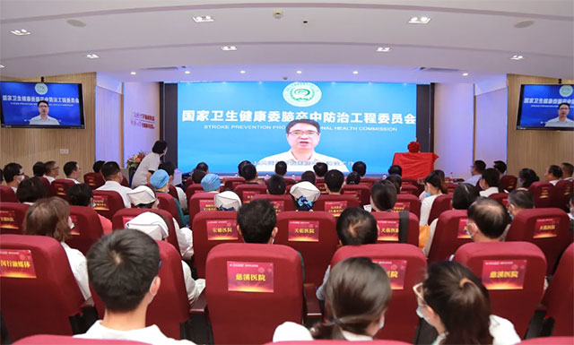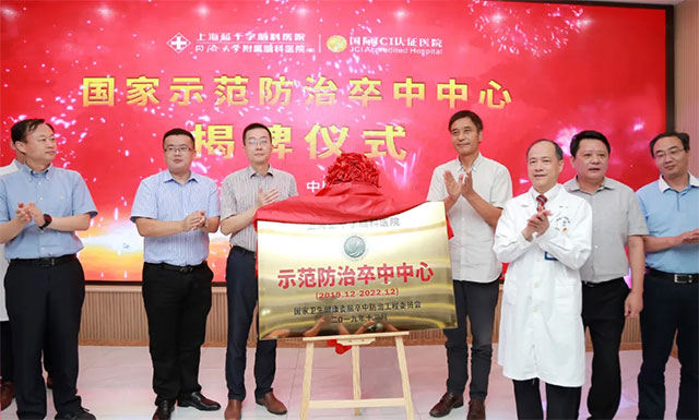 紧接着,领导和嘉宾上台为医院国家“示范防治卒中中心”揭牌。