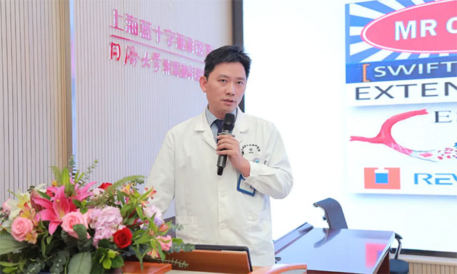 ▲ 上海蓝十字脑科医院脑血管病区主任张琪博士作《急性大血管闭塞患者取栓适应证筛选》学术报告