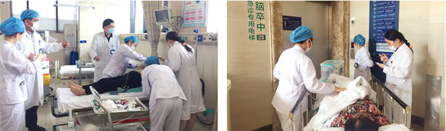 ▲ 为患者启动脑卒中急救绿色通道