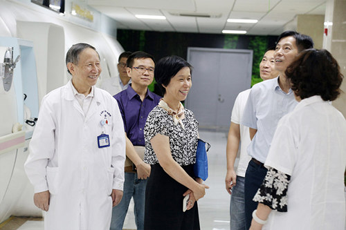 领导们先后深入我院ICU病区、手术室、神经内科3B病区、神经康复医学科、美国尼高力视频脑电室、高压氧科、医学影像科、DSA血管介入科等调研,慰问医务人员。