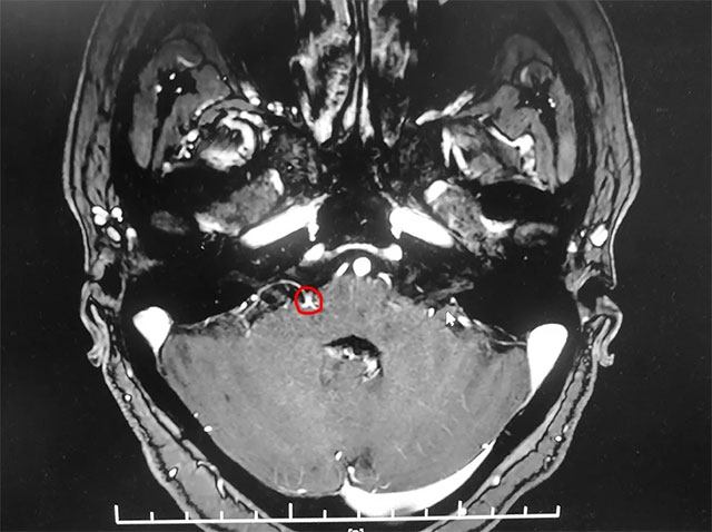 入院后,经面神经MRTA平扫+增强检查显示,患者右侧面神经与周围小血管关系密切。在对患者病情及影像学资料进行评估,并告知患者及家属手术风险后,上海蓝十字脑科医院神经外科主任沈建康教授团队为患者实施了面神经微血管减压手术。