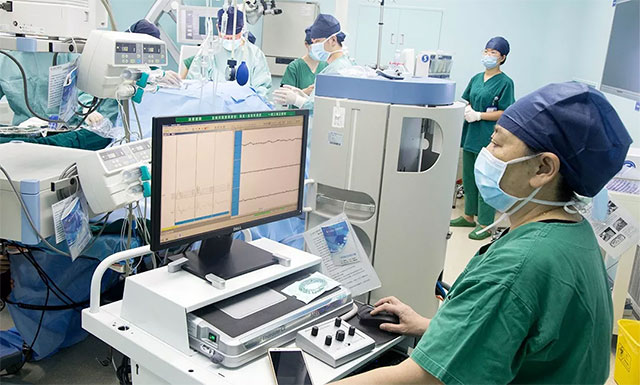 ▲ 崔丽华主任为患者进行神经电生理监测