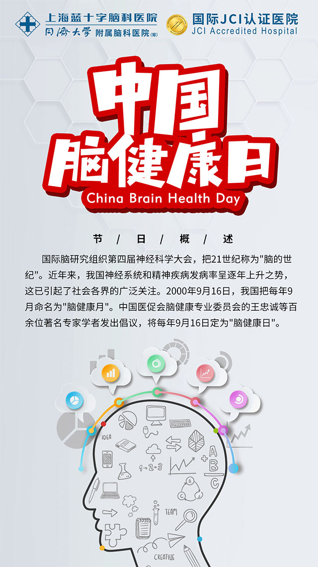 国际脑研究组织第四届神经科学大会,把21世纪称为“脑的世纪”。近年来,中国神经系统和精神疾病发病率呈逐年上升之势,这已引起了社会各界的广泛关注。2000年9月16日,中国把每年9月命名为“脑健康月”。中国医促会脑健康专业委员会的王忠诚等百余位知名专家学者发出倡议,将每年9月16日定为“脑健康日”。