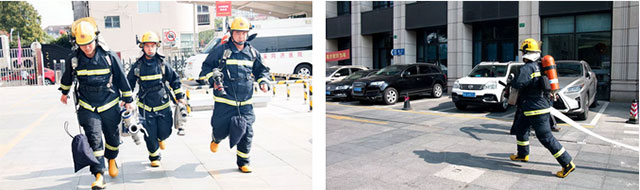 ▲ 接到指令后,微型消防站队员立即赶赴现场