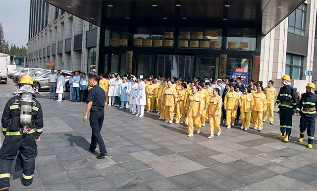 接警后,演习总指挥开起应急广播,下达红色警示,并向微型消防站下达救援指令。全院撤离现场,紧急疏散,并拨打119报警。