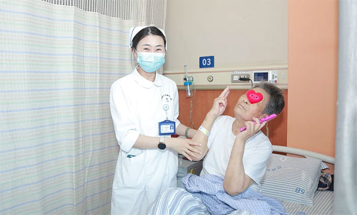 在神经内科5B病区住院的赵阿姨今年81岁,她曾是一位神经内科专家。去年因突发脑梗进行了支架手术,最近因病情有些反复而入院。“我要特别感谢5B的医生和护士们,她们能力强态度好,把我妈照顾得很好。让她在这里治疗,我很放心。”赵阿姨的女儿动情地表示。