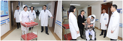 ▲院领导将重阳糕送到老人及专家手中