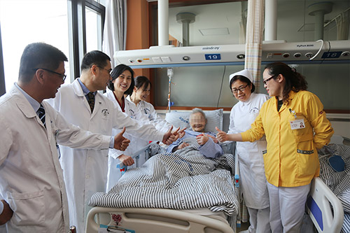 “谢谢关心,我要特别谢谢你们陈婷婷护士长,我们已经来了几个月,陈护士长能力很强,把我们照顾得很好,同时还要谢谢医生、护工,他们都很用心和负责,通过这段时间的治疗和康复,老人身体好了很多。”7B病区住院老人王大爷家人看到来送糕的领导感谢道。