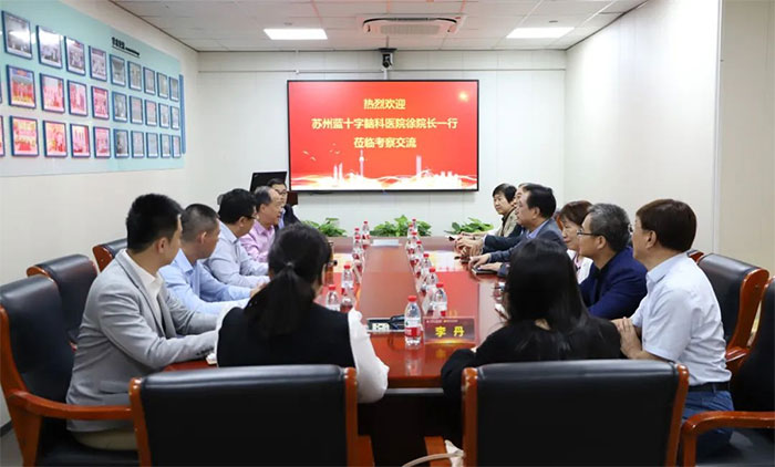 徐必生院长一行对医院的热情接待表示衷心感谢,对上海蓝十字脑科医院近几年在探索发展方向、打造医院发展特色、运营管理等方面取得的成绩给予高度评价,同时就苏州蓝十字脑科医院基本情况和发展现状作简要介绍,表示希望今后多加强沟通交流,取长补短,共同进步。