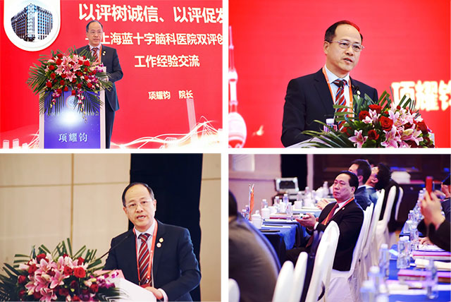 会上,院长项耀钧作为获奖单位代表发言。项院长以“以评树诚信,以评促发展”为题,从“双评”创建背景、创建过程、成效体会三方面分享了医院“双评”创建工作经验。上海蓝十字脑科医院高度重视双评工作,围绕信用建设和能力建设两大中心任务,全面打造“优质、安全、便捷、诚信”医院品牌形象。近三年来,一年一个台阶,医院建设稳步推进。