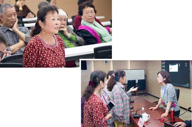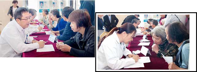 做完检查后,居民们又来到门诊大厅现场咨询。神经内科李世平主任,中医科特需专家张德荣主任,疼痛科焦国华主任、汪斌医生等为居民们提供健康问询与指导。