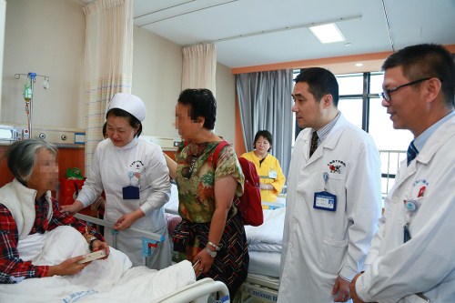 当天,院方一共为60岁以上的住院病人送去了近400份重阳糕。定居荷兰40多年的辛女士看到了这一幕十分感动,“我要特别谢谢你们医院对我妈妈的照顾,我从国外回来,第一次在国内看到这么好的医院,这么好的服务,比我自己照顾都要好,真的谢谢你们。”