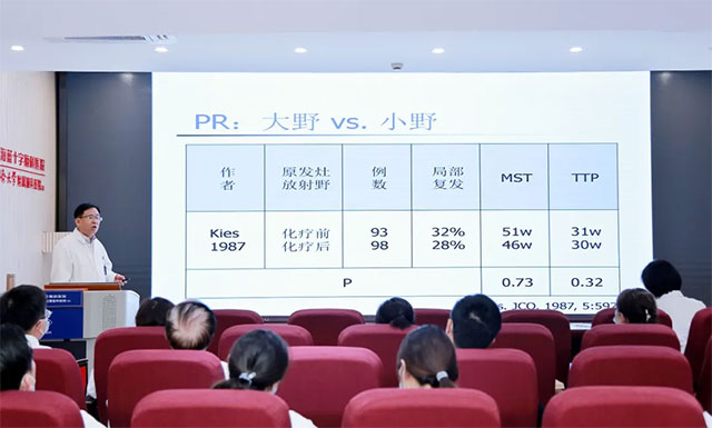 吕长兴教授还结合自己在恶性肿瘤,尤其是胸部肿瘤领域长期的临床研究,以及丰富的放射治疗及综合治疗经验,引用国内外权威学术期刊研究成果,聚焦于肺癌治疗过程中放疗时机选择、放疗剂量模式改变、放疗靶区的准确勾画、同步放化疗联合治疗、通过预防性照射减少脑转移、PET/CT在制定放疗计划中的重要作用等方面进行了深入浅出的精彩讲解。