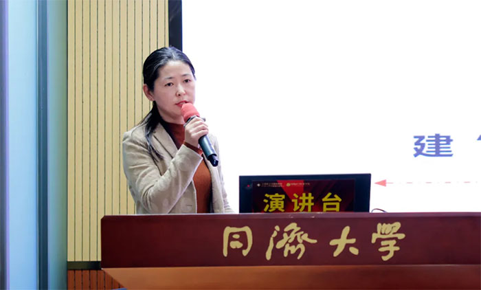 ▲ 闵行区社会医疗行业工会联合会副主席、蓝十字工会主席吴春芳作消防安全生产工会报告