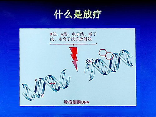 ▲放射线破坏肿瘤细胞的DNA分子结构,从而使肿瘤细胞凋谢死亡