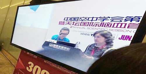 ▲张静波参加天坛国际脑血管病大会(讲者及主持)