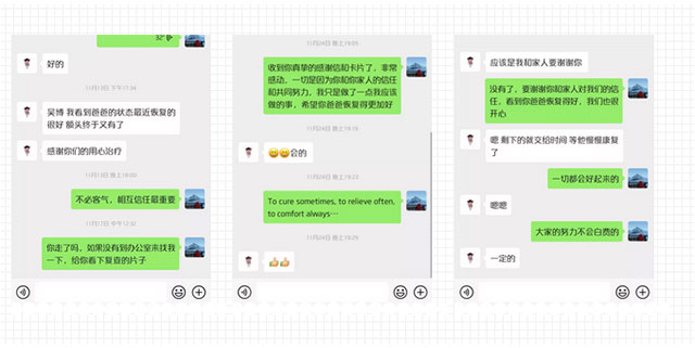 随后,爸爸又出现了脑积水、肺部感染加重等并发症。在治疗的过程中,吴博士一如既往地跟我们耐心沟通、讲解病情,面对各种专业术语,他会用通俗易懂的例子来解释清楚;与此同时,他还会对我们家属进行心理疏导,减轻我们的心理压力,每次跟吴博士沟通过后,我的疑虑就会消除,整个内心也随之明亮起来,充满了希望!入院后三个月的日日夜夜中,在吴博士的精湛医术和潘仁龙教授带领的专业团队的精心服务和不懈努力下,爸爸的病情一天天的好转起来,慢慢的恢复了意识,病发症也得到了有效的控制,并接受了全方位的康复治疗,7月底爸爸出院回老家康复了。