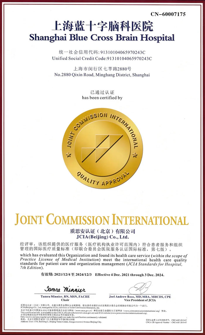 12月19日,上海蓝十字脑科医院正式收到国际医疗机构认证联合委员会颁发的JCI认证证书。金牌标志金光熠熠,这是医院自2018年首次通过评审后,时隔三年,再次赢得这一殊荣。