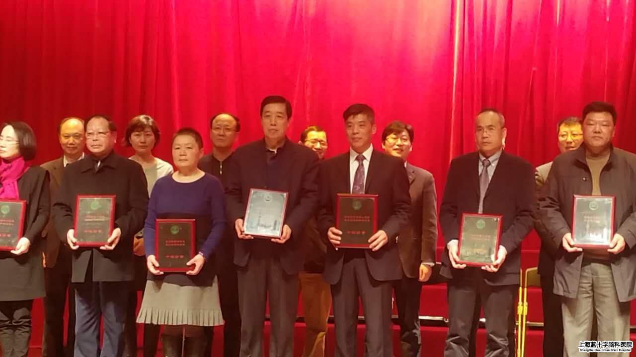 上海蓝十字脑科医院新院副院长袁士宗教授(前排左4)上台接受奖牌