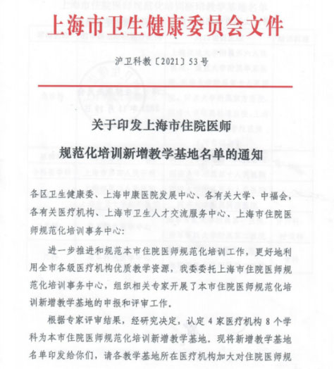 为进一步推进和规范本市住院医师规范化培训工作,更好地利用全市各级医疗机构优质教学资源,经上海市住院医师规范化培训事务中心评审,上海市卫生健康委员会批准,上海蓝十字脑科医院获批上海市住院医师规范化培训教学基地(以下简称“住培基地”)。