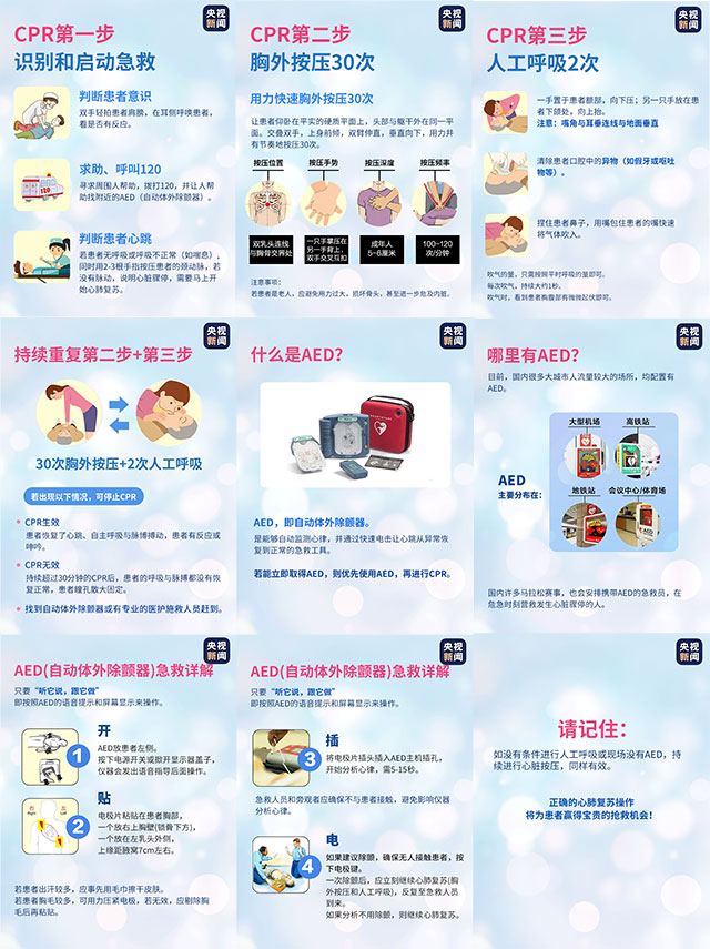 齐洪阁主任指出,二者不能互相替代。“心肺复苏只能暂时帮助建立循环,让我们通过外力驱动把心脏的一些血压到外面去满足周围器官的供血。但是,它并没有从本质上改变室颤。只有靠AED释放一些高压的电,才能瞬间打断这个颤动心脏的节奏。”