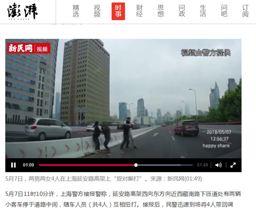 今年5月7日11时10分许,上海警方接报警称,延安路高架有两辆小客车停于道路中间,随车人员(两男两女共4人)互相扭打。经查,这是一起“路怒”引发的交通违法事件,警方对相关违法人员依法采取行政拘留、行政罚款等处罚。