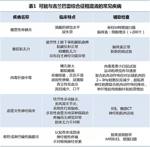 在临床上,格林巴利综合征很容易与横贯性脊髓炎、重症肌无力、肉毒杆菌中毒、血管炎性神经病变、癌性或淋巴瘤性脑膜炎等疾病混淆,患者在做就诊时很容易被误诊。根据国际常用的GBS诊断方法,检查格林巴利综合征患者的脑脊液,多有蛋白增高而细胞数正常或接近正常的蛋白-细胞分离现象。结合临床上患者出现的进行性对称性麻痹、四肢软瘫,以及不同程度的感觉障碍等典型表现,可予以确诊。
