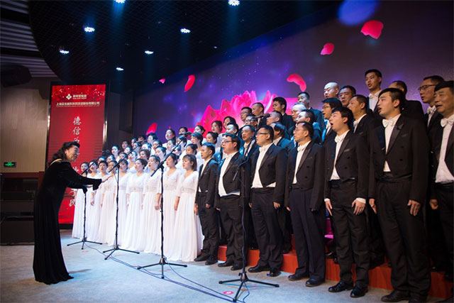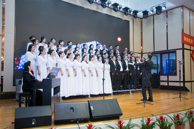 ▲ 项耀钧院长指挥“蓝色梦幻合唱团”五声部合唱《我的中国心》