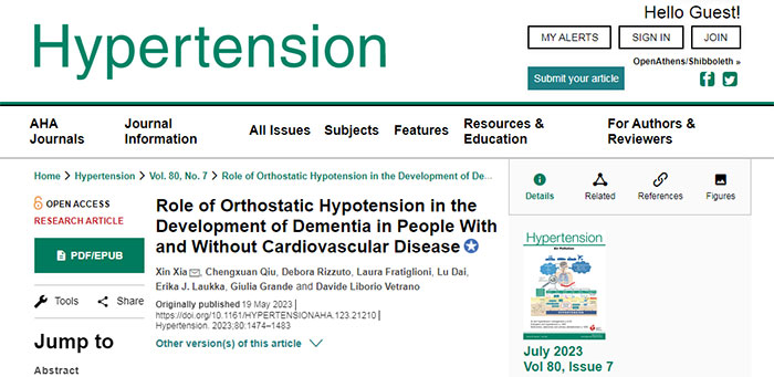 该项研究历时长达15年,涵盖2703例无痴呆参与者,平均年龄73.7岁,根据是否有心脑血管疾病进行分组,在明确相关标准后开展长期研究工作。结果显示,直立性低血压(Orthostatic Hypotension,OH)与心脑血管疾病风险升高显著相关。