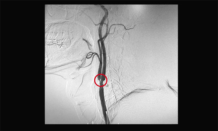 医院神经外科6A病区医生团队详细了解黄先生的病史,并进一步完善相关检查。行DSA脑血管造影检查后,显示患者左侧颈内动脉起始部狭窄约70%,左侧颈外动脉起始部狭窄约90%,属于重度狭窄,应考虑手术治疗。