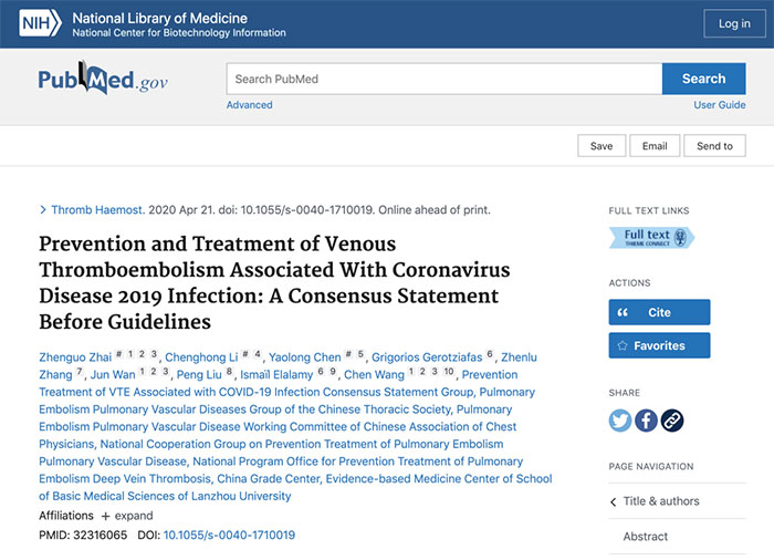已有多例COVID-19患者合并静脉血栓栓塞症(VTE)的病例报道,尤其是合并肺栓塞(PE),这可能是造成感染者病情加重、甚至死亡的重要病因。此外,部分患者早期存在明显的高凝状态,若不加以干预则可能继发广泛的微血栓形成,最终导致弥散性血管内凝血(DIC),严重影响患者的预后。