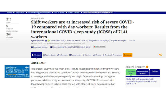 《国际时间生物学》(Chronobiology International)是以医学—生物学和生理学为主要研究方向的美国专业期刊,2021年度IF影响因子为3.749 。该项研究从国际新冠肺炎睡眠研究(ICOSS)中收集到四大洲、15个国家和地区的7141名参与者作为研究样本。