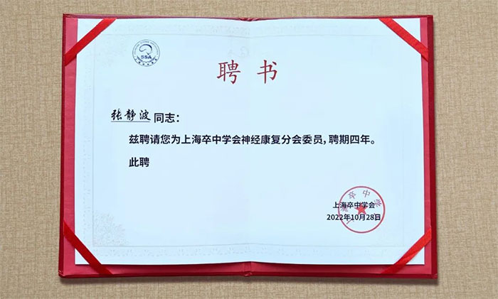 10月28日下午,上海卒中学会神经康复分会(筹)正式成立,上海蓝十字脑科医院神经内科7A病区主任张静波接受分会聘任,担任委员,为期四年。