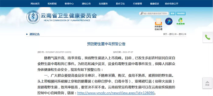 7月至10月是我国中部和西南地区传统的“食菌季”,部分省市在近期相继发布了预警——7月7日,云南卫健委发布《预防野生菌中毒预警公告》,提醒广大群众提高食品安全意识。8月30日,株洲市疾控中心也发布提醒,也是湖南省野生蘑菇中毒的高发季,市民切勿食用野生蘑菇,以免中毒。