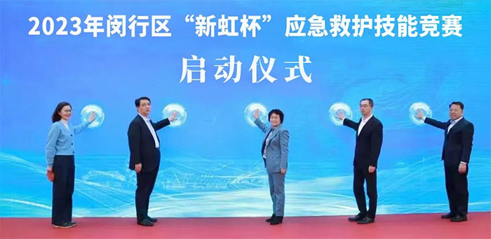 区人大常委会副主任、总工会主席杨其景,上海市职工技协服务中心主任、上海市职工技术协会副会长钱传东,新虹街道党工委书记、人大工委主任郁小明,区红十字会党组书记丁铖惠,区红十字会常务副会长许沁共同启动竞赛。新虹街道党工委书记、人大工委主任郁小明发表了热情洋溢的致辞。