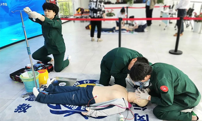本次竞赛根据不同对象,设立“医务职工组”和“企业职工组”两个组别,医务职工组设立心肺复苏+AED(三人)、高处坠落骨折伤病员急救(三人)竞赛项目,企业职工组设立心肺复苏+AED(单人)、创伤救护(两人)竞赛项目。