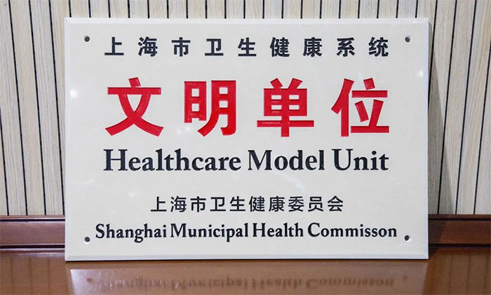 ▲ 上海蓝十字脑科医院党支部副书记赵宇兰代表医院接受荣誉牌匾