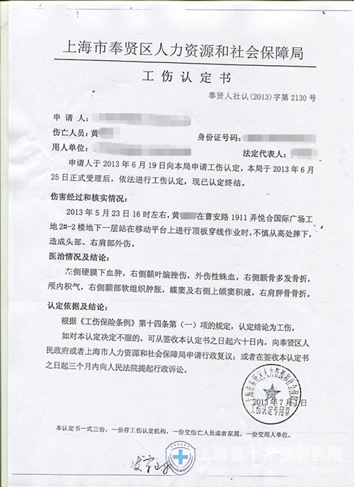 1、 收治工伤人员时:首先出示工伤认定书进行身份信息、工伤信息核对。附图片: